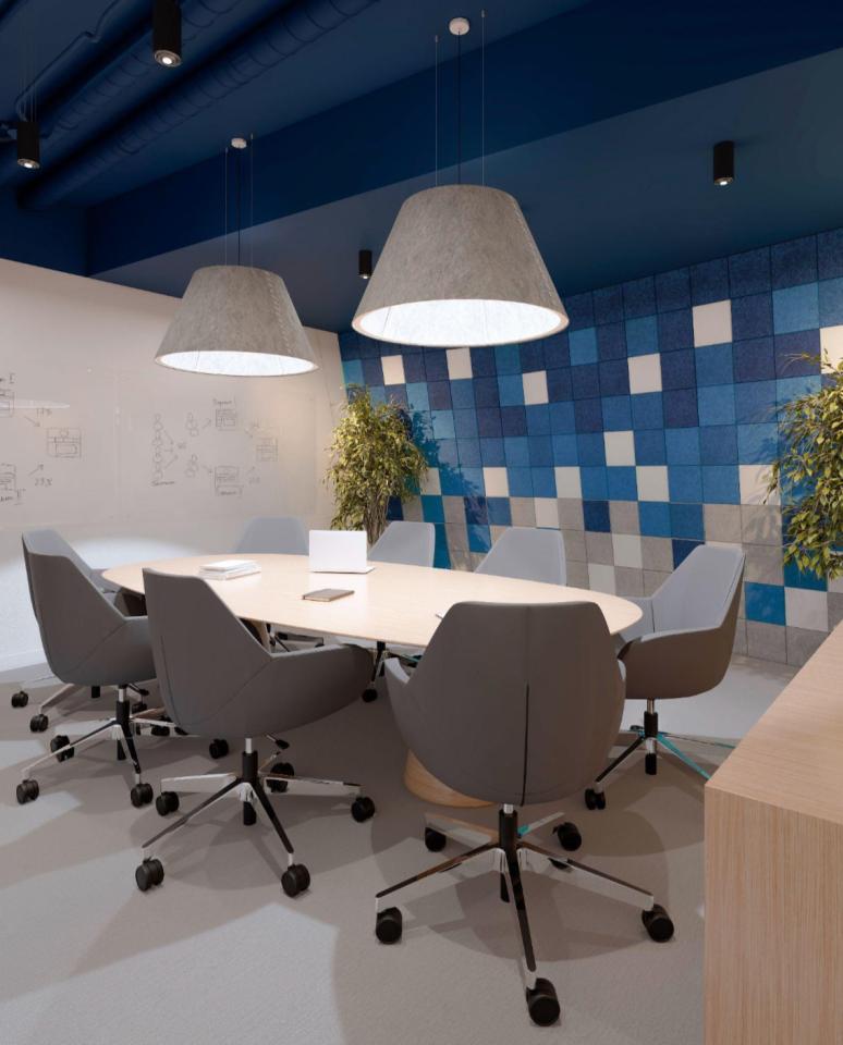 Lighting scenarios were designed for different work formats, from focused to relaxed.