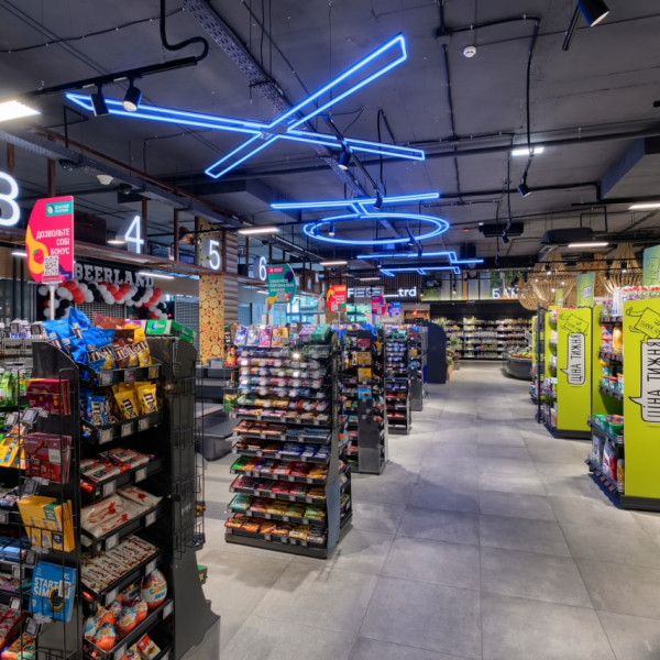 A supermarket with a vibrant visual concept and well-planned navigation